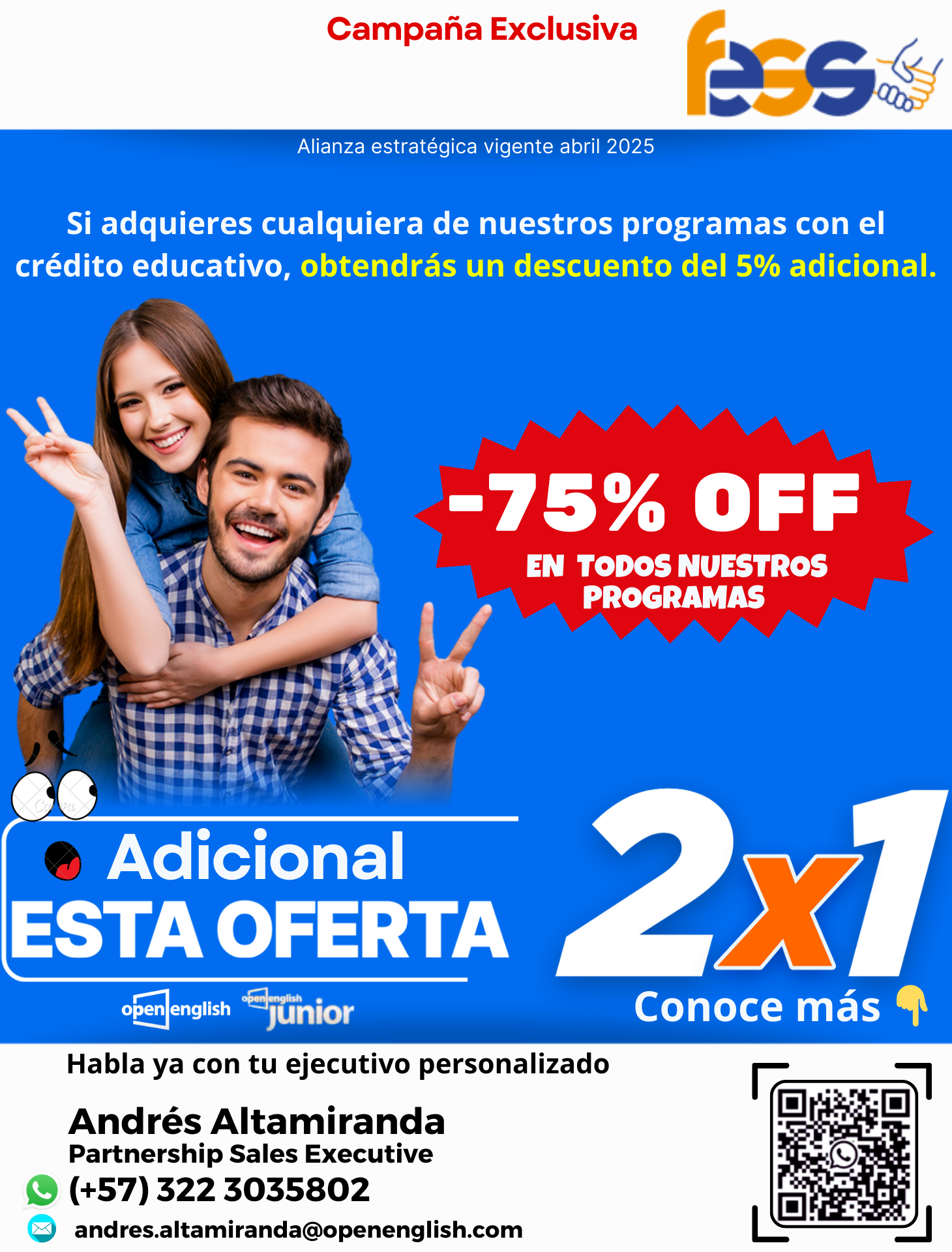 Para mayor información, comunícate con el asesor Andrés Altamiranda al número de cel 3223035802 o escribe al correo andres.altamiranda@openenglish.com